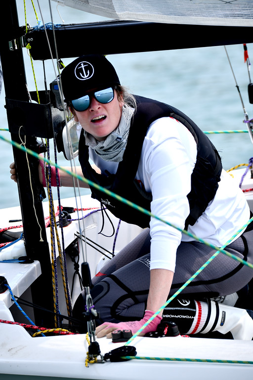 Sunday brought clear skies, cool temperatures and a northerly breeze. The RC was well organized and making the most of their auto-positioning robot marks, getting in 7 races in breeze which clocked right from gradient to thermal keeping us on our toes looking for the next big shift. Eric Vigrass, Lee Shuckerow and Lisa Vigrass on JACKPOT (294) showed their skills winning handily with five bullets and three seconds. Brian Johansen, Betsy Carson, Jonah Kember, and Liz Irish on NORTHERN HONEY BADGER (292) finished in second and Steve Chapman, Christophe Ledent and Nick Lounsbury on OSHUNMARE (288) in third.