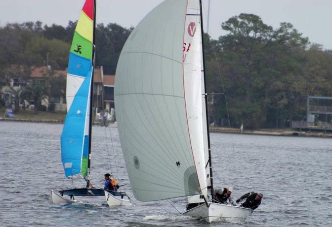Tell us about the sailing conditions at your home port (Fort Walton YC – Florida panhandle) — what is it like? Clean, clear water, year-round sailing, and sea breeze most days, winds averaging 10-15 knots, with some days 18 knots with good puffs. Minimal chop and not steep. Can push the Viper to the ramp/hoist and you’re off.