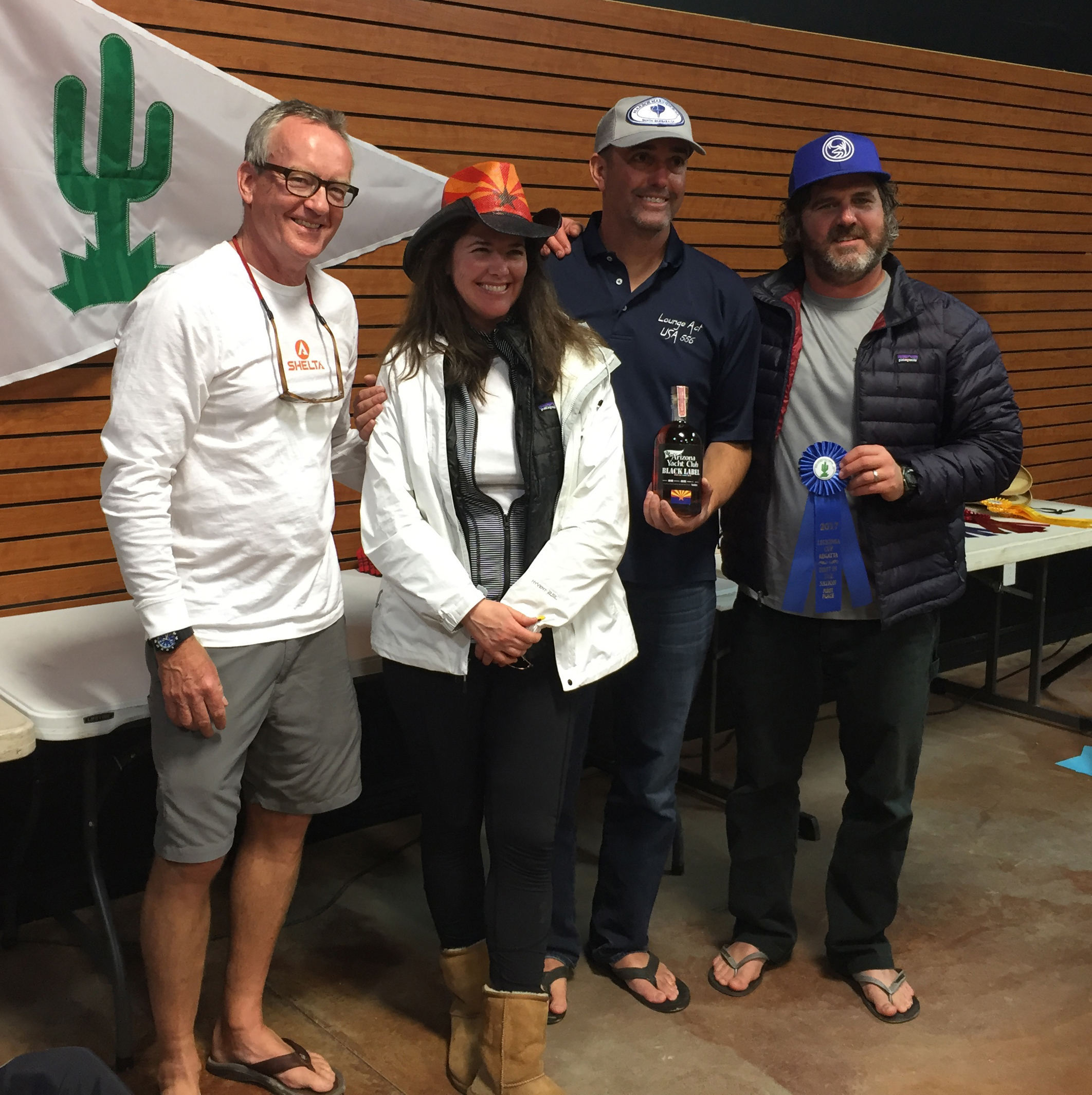 When it was over, Jeff Grange, racing Venom with his wife Caroline and fellow Santa Barbara sailor Mike Cooney, had mowed down the Viper competition: his single “bad” race (a third) tossed out, leaving him with a total of 9 points in 9 scored races. The headline noted his “buckling down” because Grange won the overall prize of this western-themed regatta—a huge custom cowboy belt buckle. We can’t wait to see him wearing that over his hiking pants.